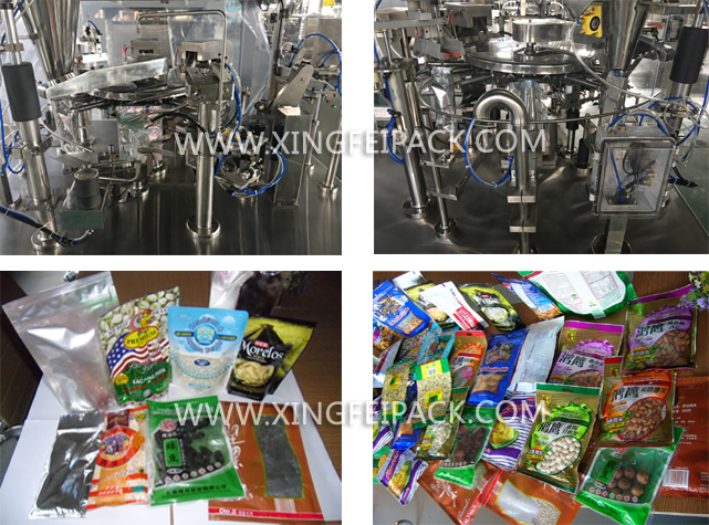 本機(jī)適用于平面袋,自立袋,拉鏈袋等各種形狀的熱封的復(fù)合袋, 與各種計量機(jī)配套,可進(jìn)行顆粒,粉劑,液體等物料的包裝。