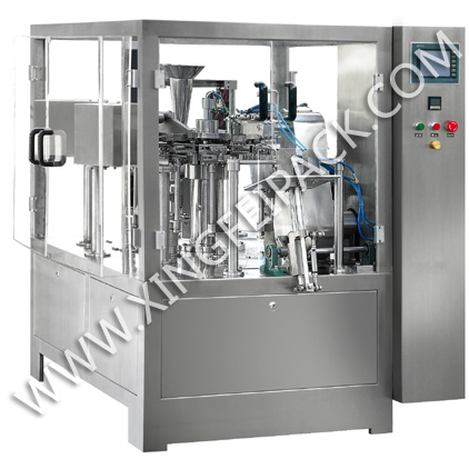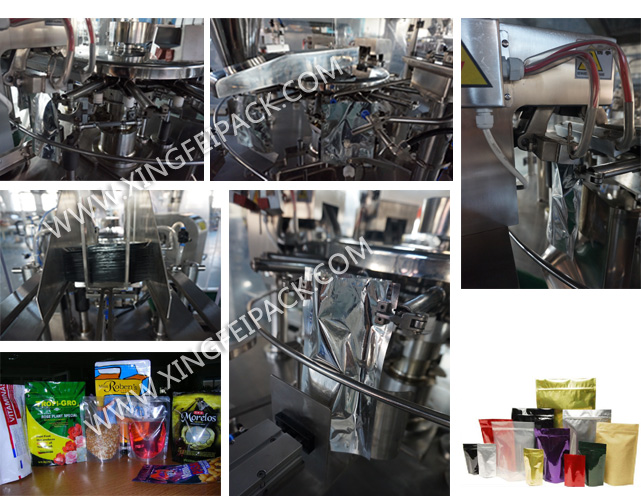 本機適用于平面袋,自立袋,拉鏈袋等各種形狀的熱封的復合袋, 與各種計量機配套,可進行顆粒,粉劑,液體等物料的包裝。