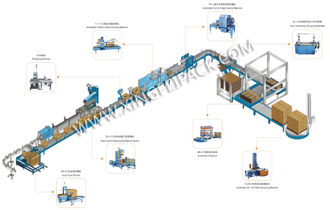 我司可根據(jù)不同產(chǎn)品及要求設計定制整條紙箱包裝線,從紙箱成型到后面碼垛纏繞膜包裝。適用于瓶裝,袋裝,罐裝等產(chǎn)品。歡迎來信來電咨詢。